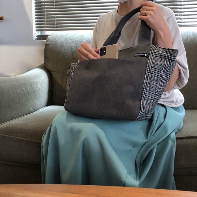 ◇生地コンビ2FACEトートシリーズ◇ こなれ感のある洗い帆布に、秋冬柄生地をコンビにしたシリーズ。 サイドの金具調整で舟型とボックス型の2FACE仕様。 ◆帆布と同色系の秋冬柄生地をコンビにした大人カワイイバッグ。 ◆肩掛けしやすい長めの持ち手で使い勝手もGOODです◎ 【サイズ】H28×W26×D15(cm) 【素材】綿・ポリエスエル 【生産国】中国