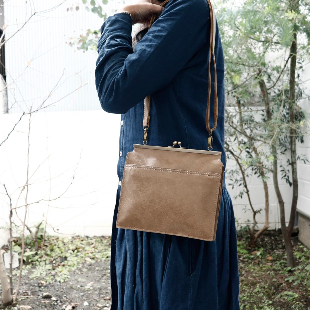 ナチュラル合皮 がま口 ミニショルダーバッグ 全4カラー