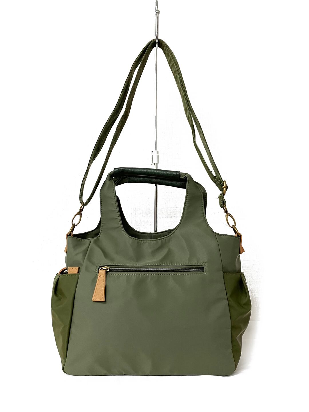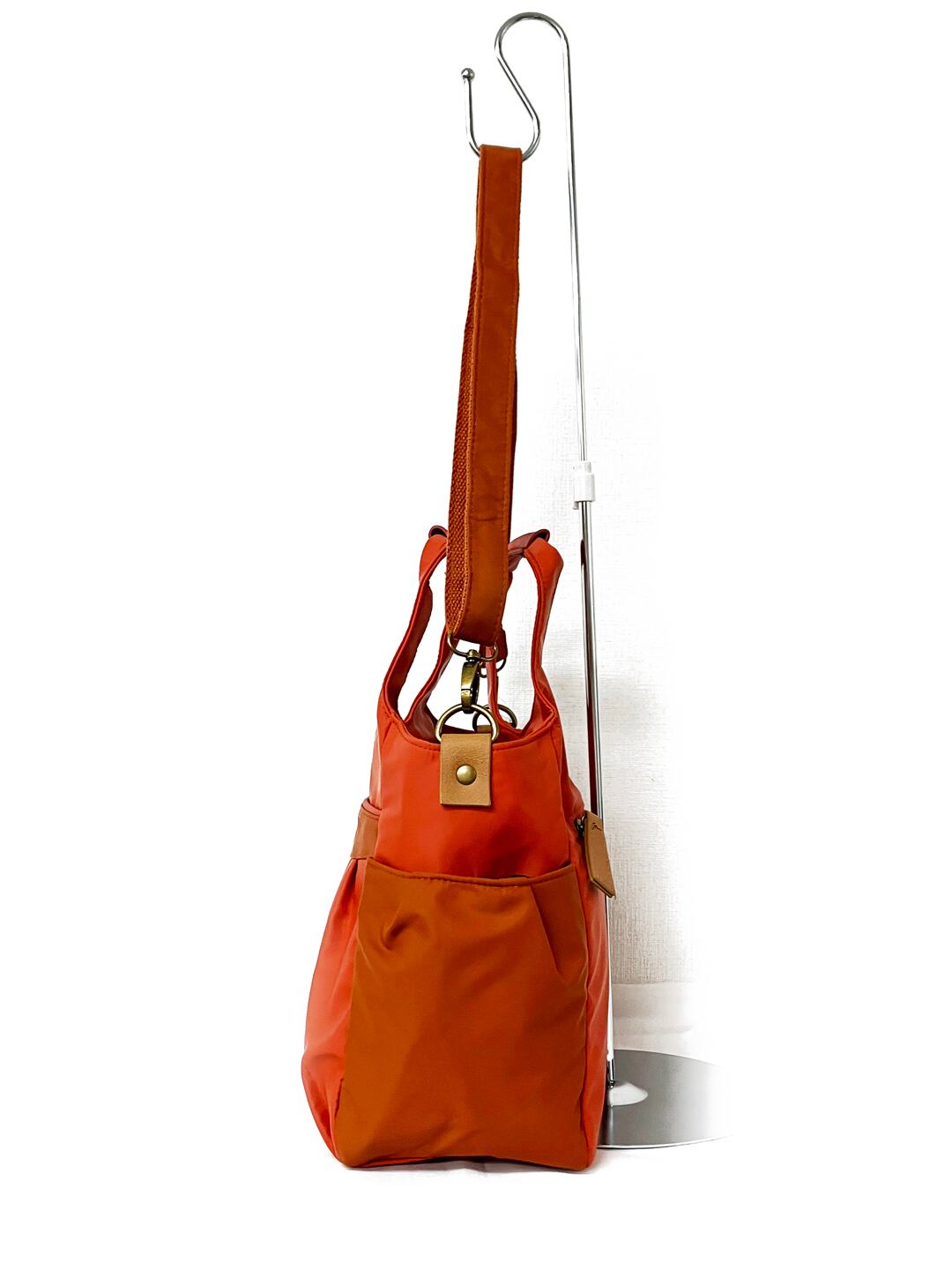 撥水ナイロン調 ポリエステル 2WAY 手提げバッグ 取り外し可能ポーチ付 全4カラー
