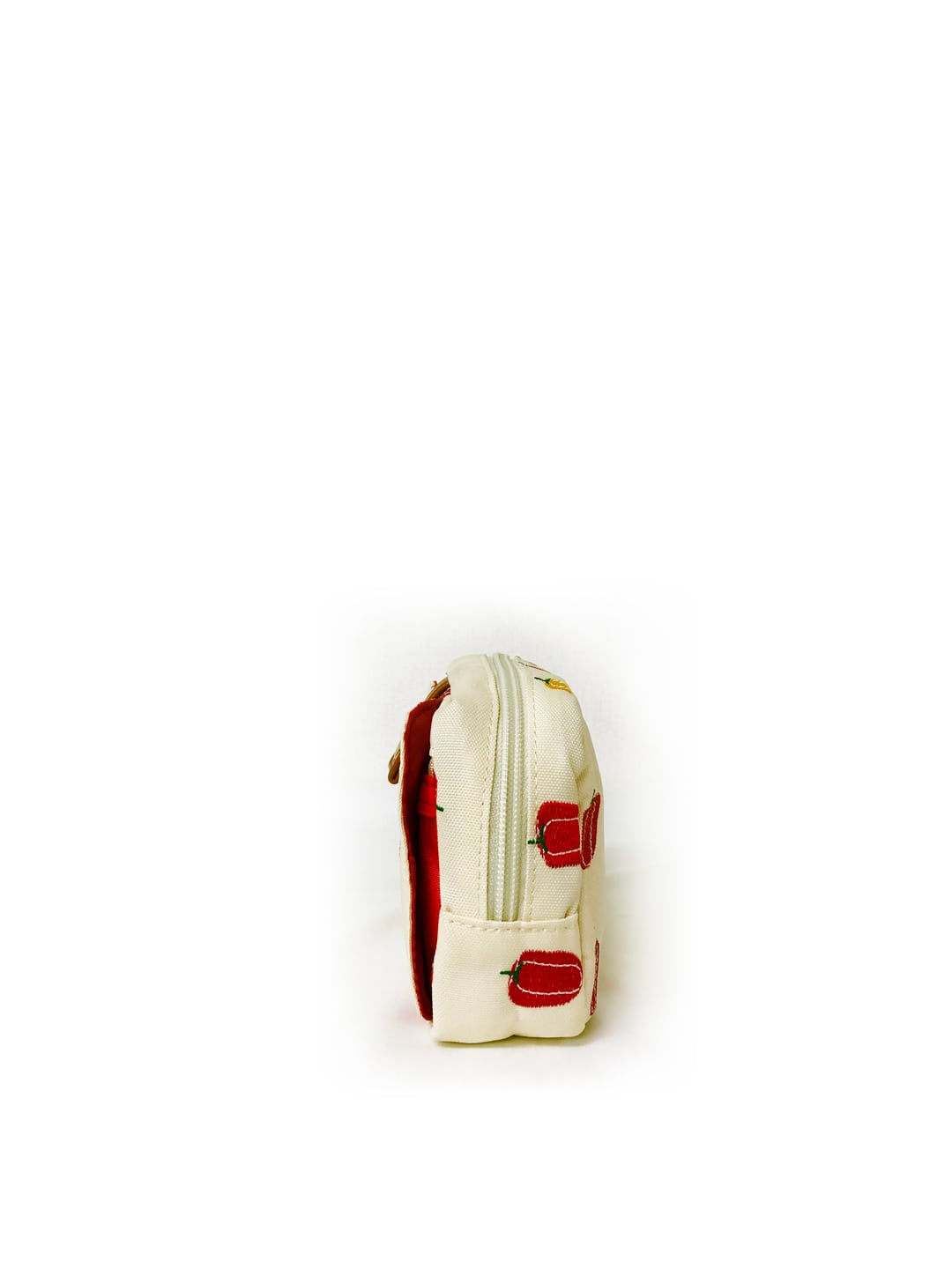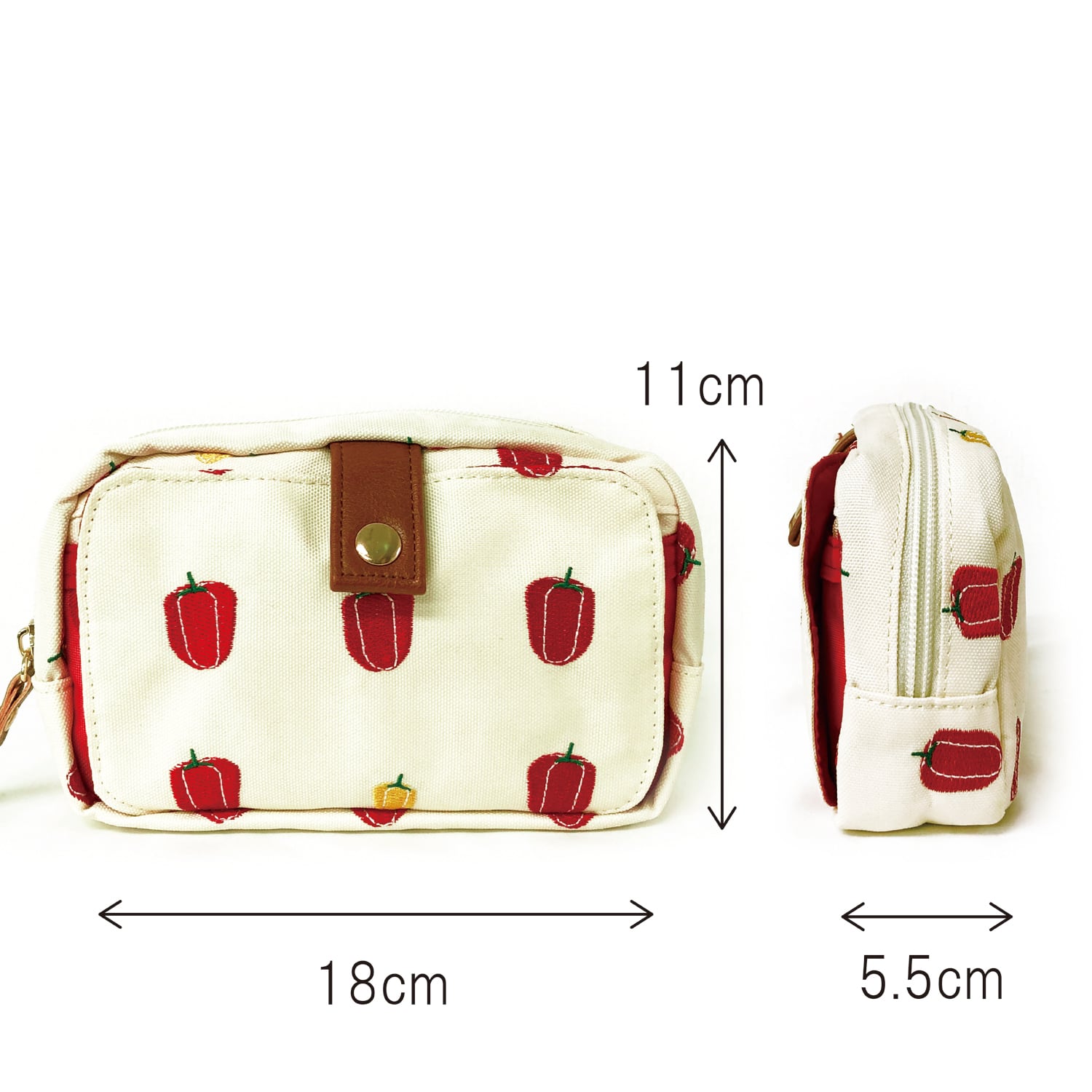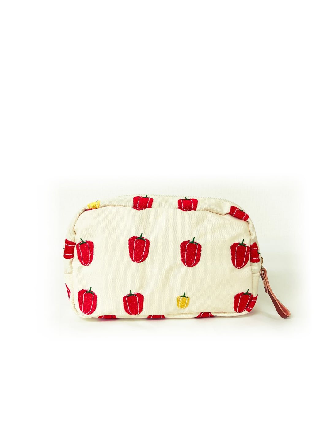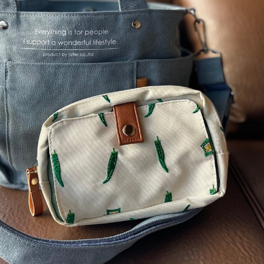パプリカ・オクラ・なす・しめじ。遊び心たっぷりの野菜柄刺繍がキュートなマルチポーチ。