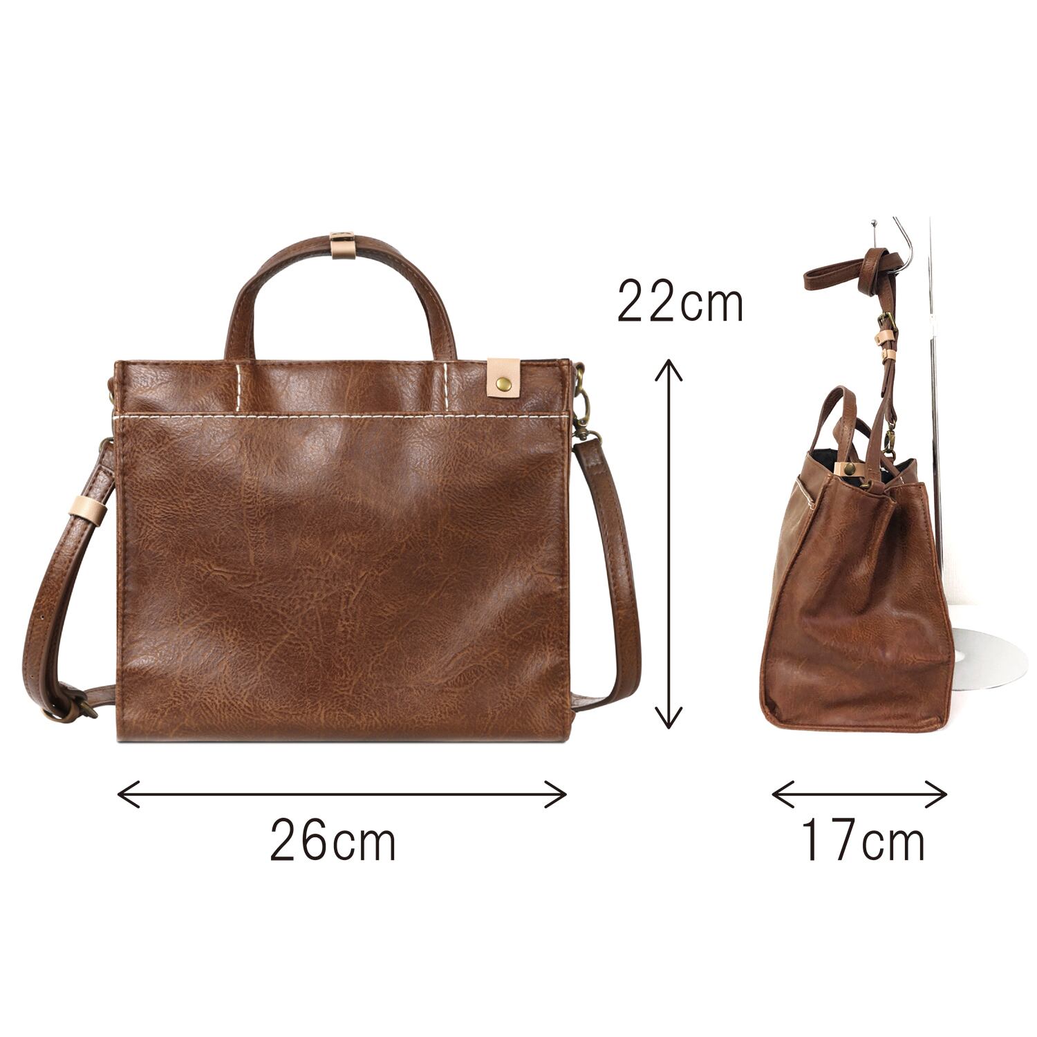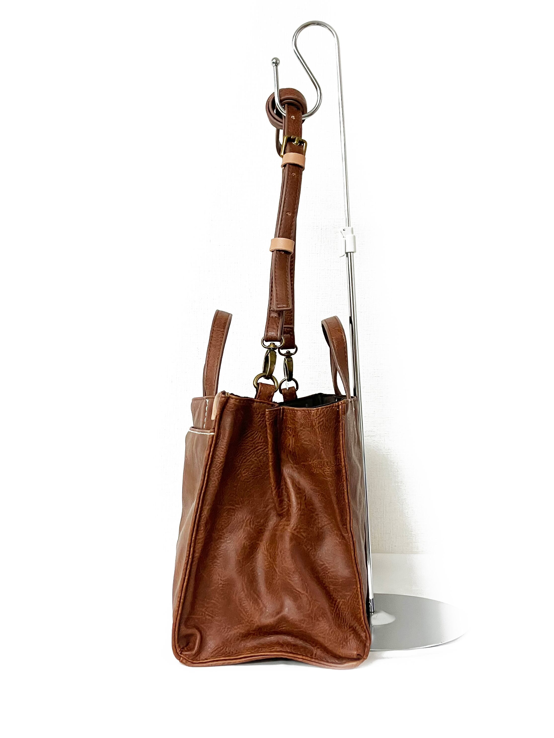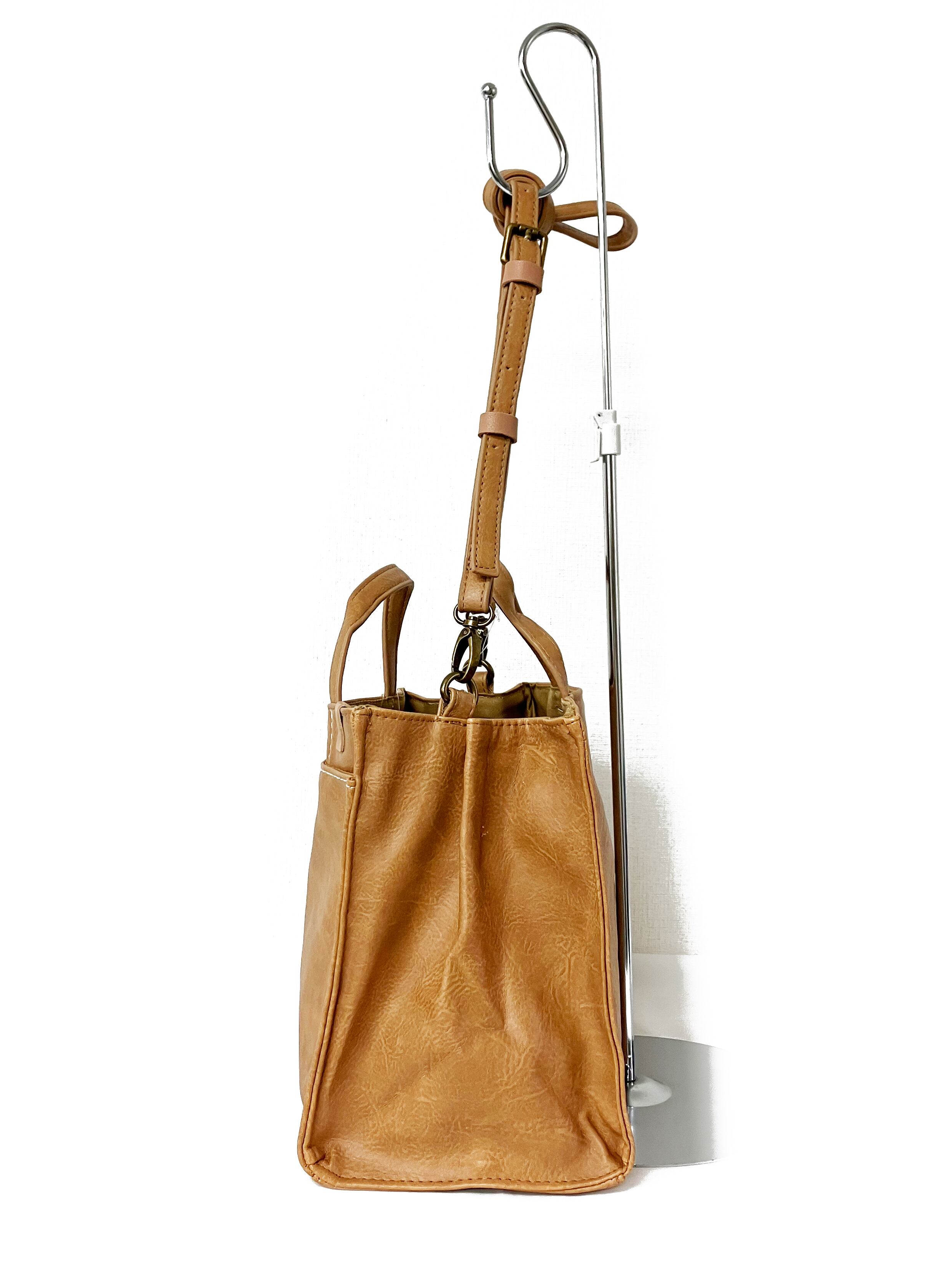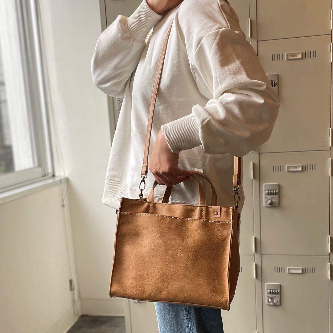 本革風合皮 2WAY 手提げバッグ 内側仕切り 全3カラー