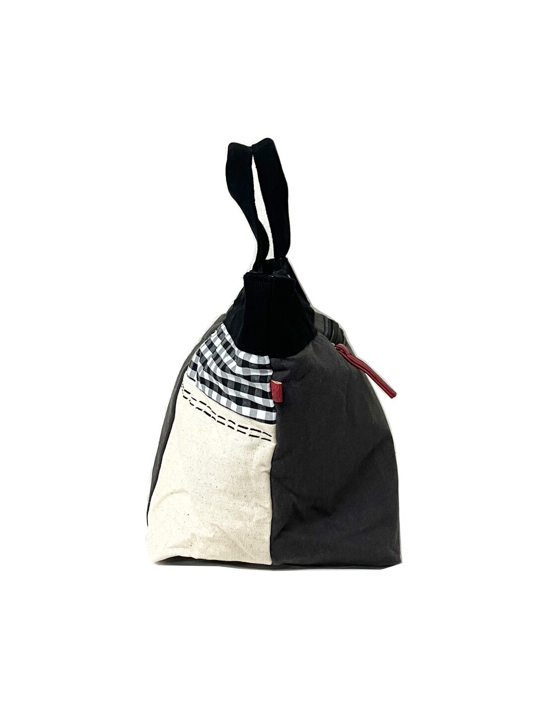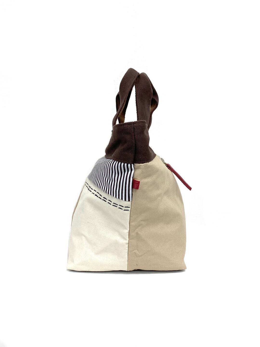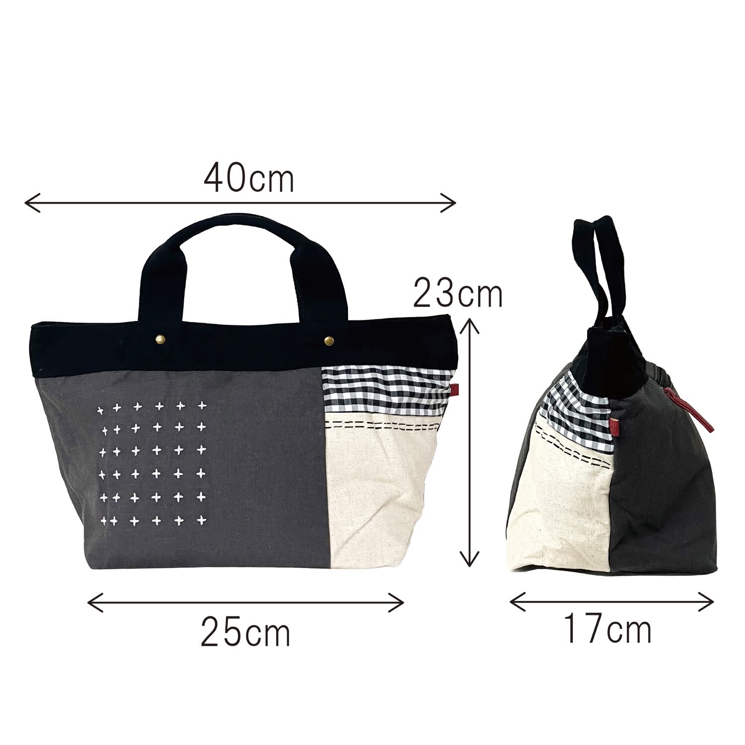 パッチワーク刺し子風ステッチ 綿 舟型手提げバッグ 全3カラー