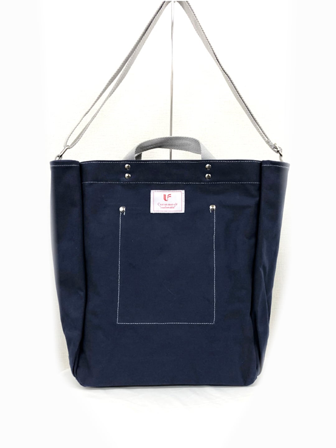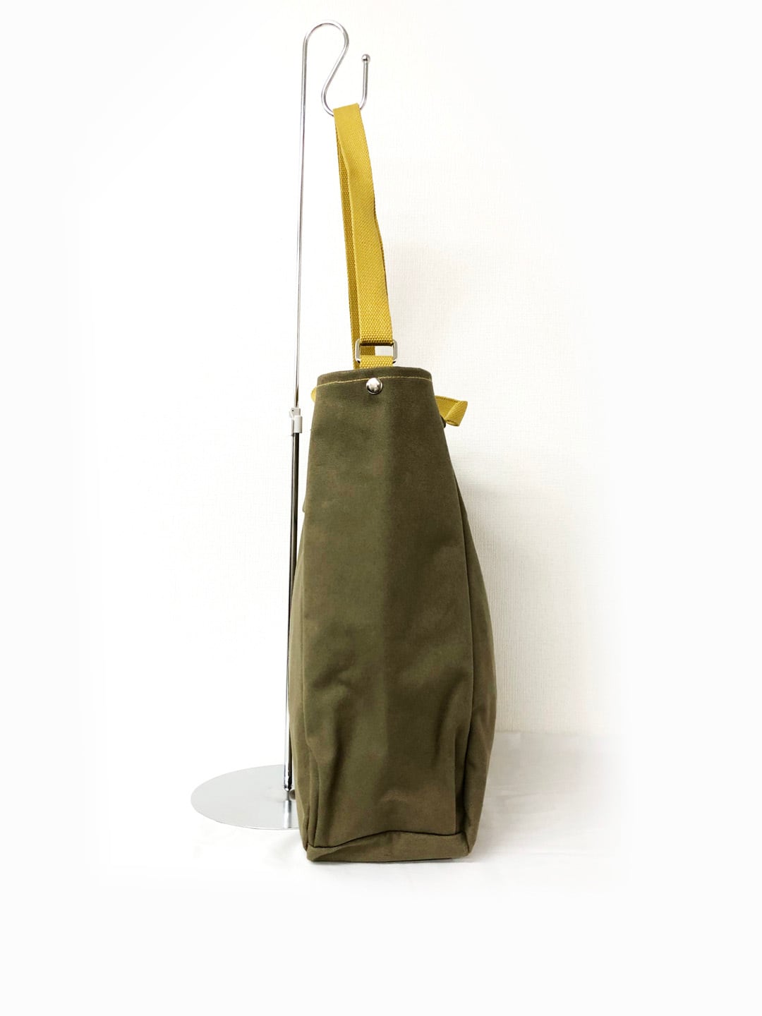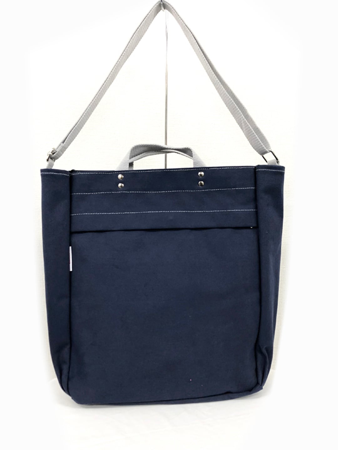 丈夫な帆布生地に、持ち手とステッチの配色がアクセント。
