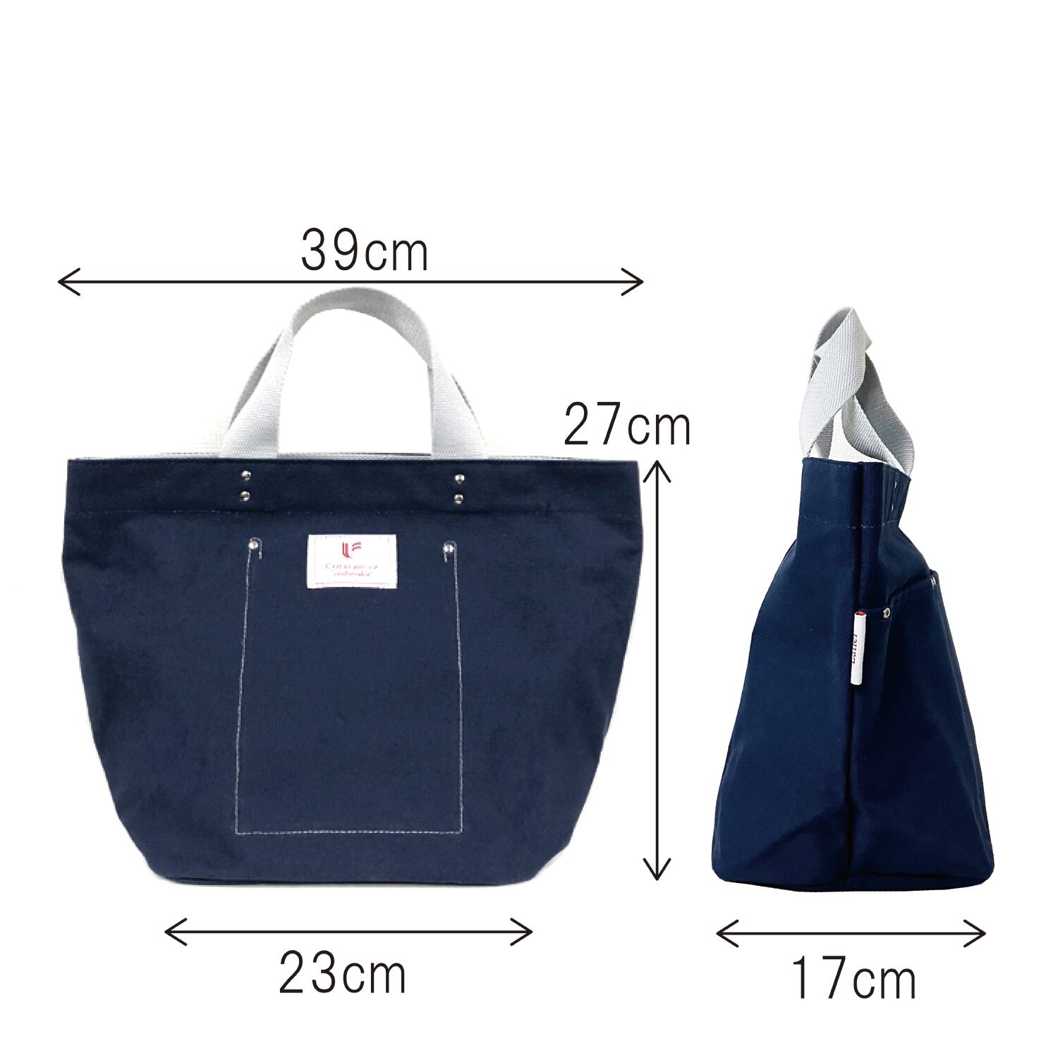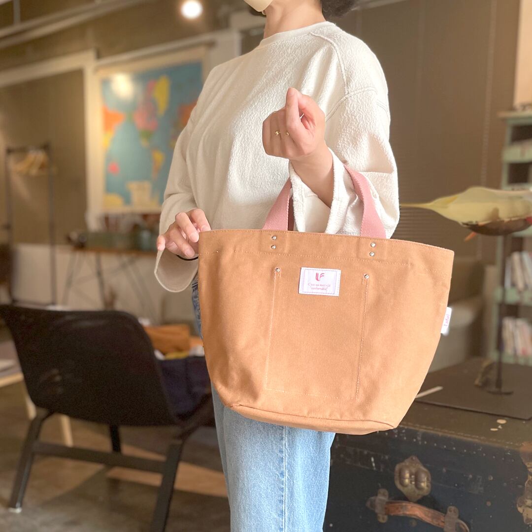 丈夫な帆布生地に持ち手の配色がアクセント。
