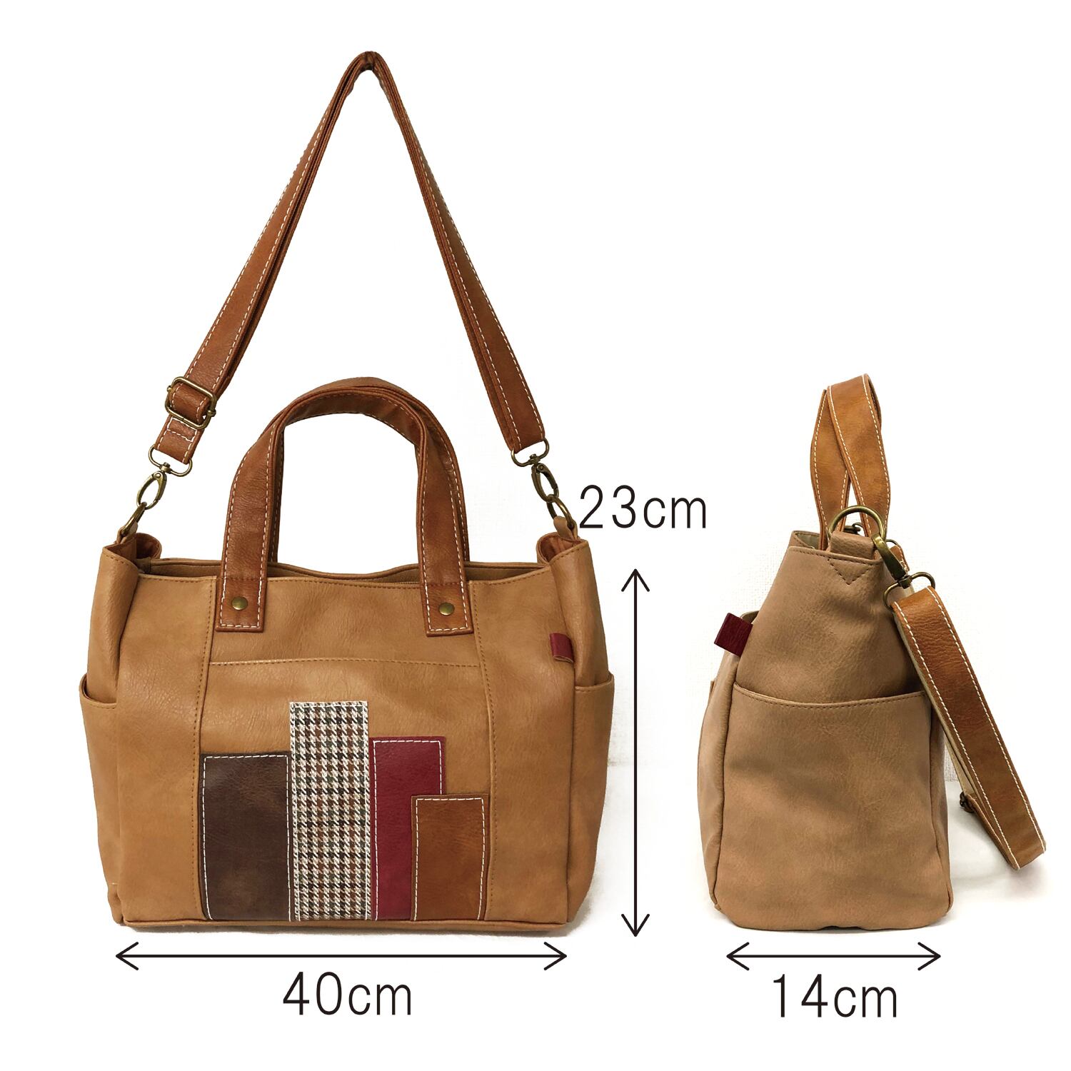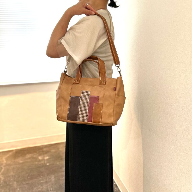 合皮パッチワーク トートバッグ 2WAY 全3カラー