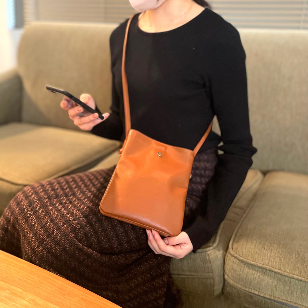 柔らかな合皮にサティーナゴールドのカシメがアクセント。