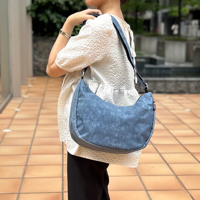 ◆表情のあるしわナイロン調生地に同色のドットプリントを施した軽くてカワイイバッグです。