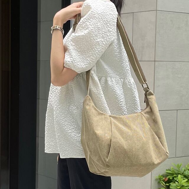 ざっくりした生地をコロンと立体的なフォルムに仕上げた大人カワイイバッグ。