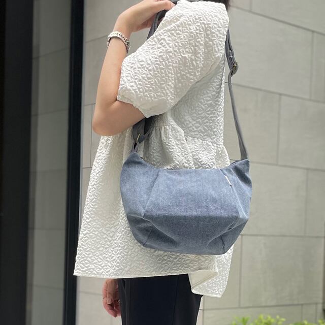 ざっくりした生地をコロンと立体的なフォルムに仕上げた大人カワイイバッグ。