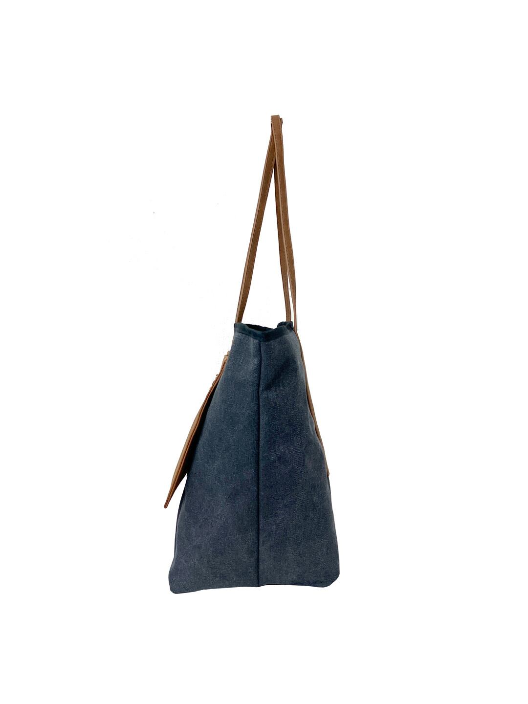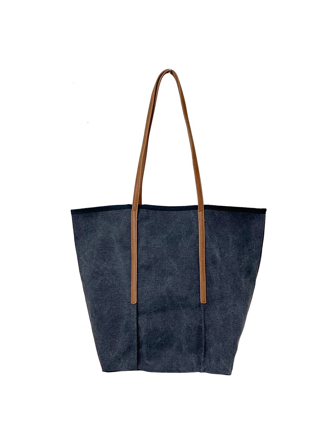 ◆帆布×合皮のコンビが印象的で存在感あり。