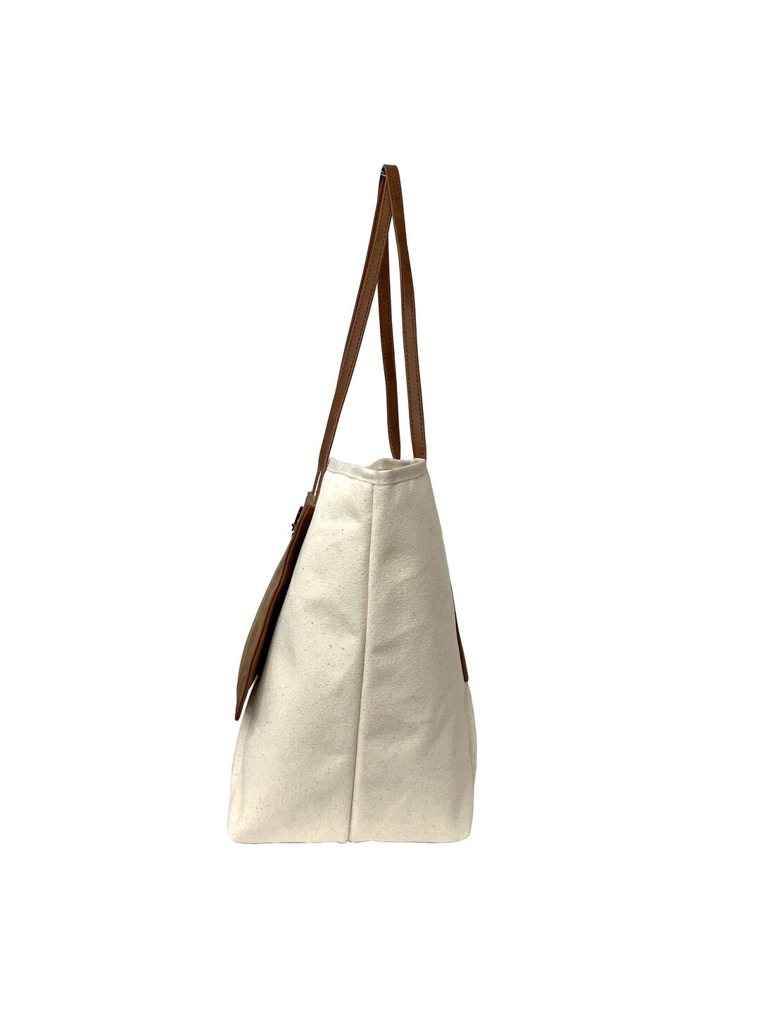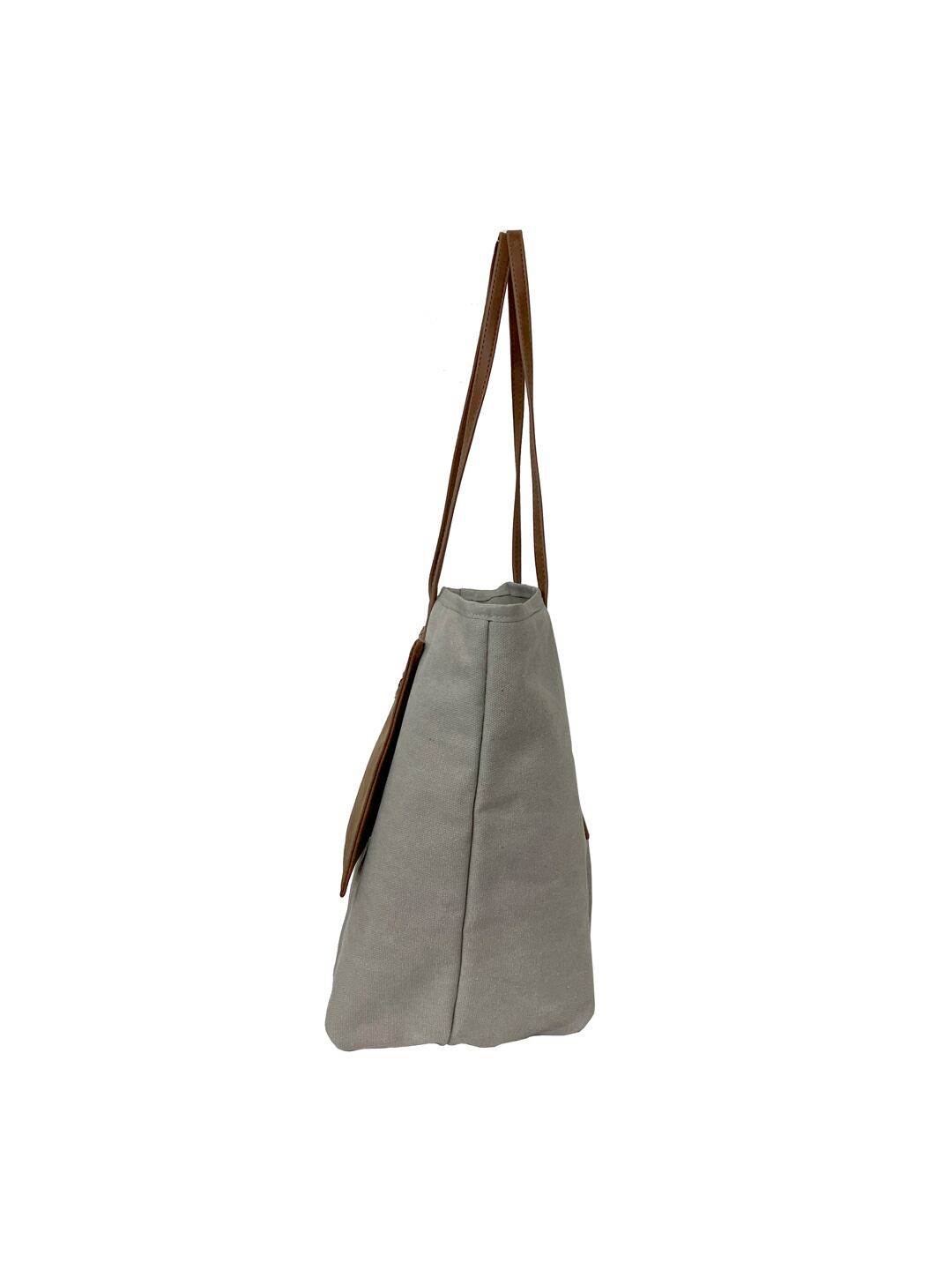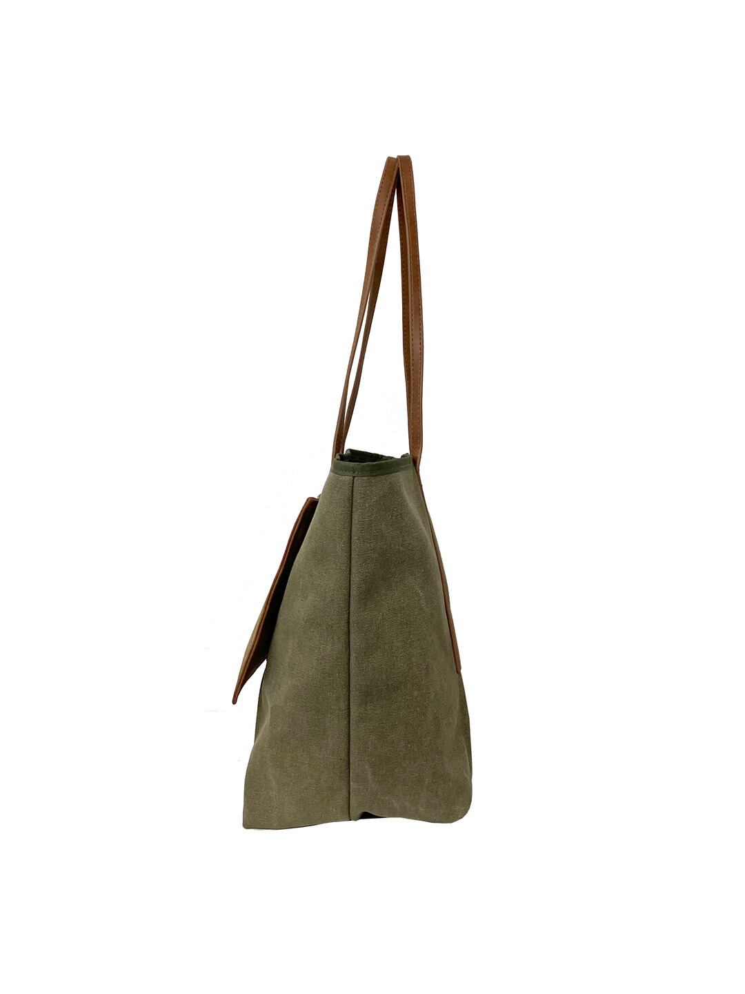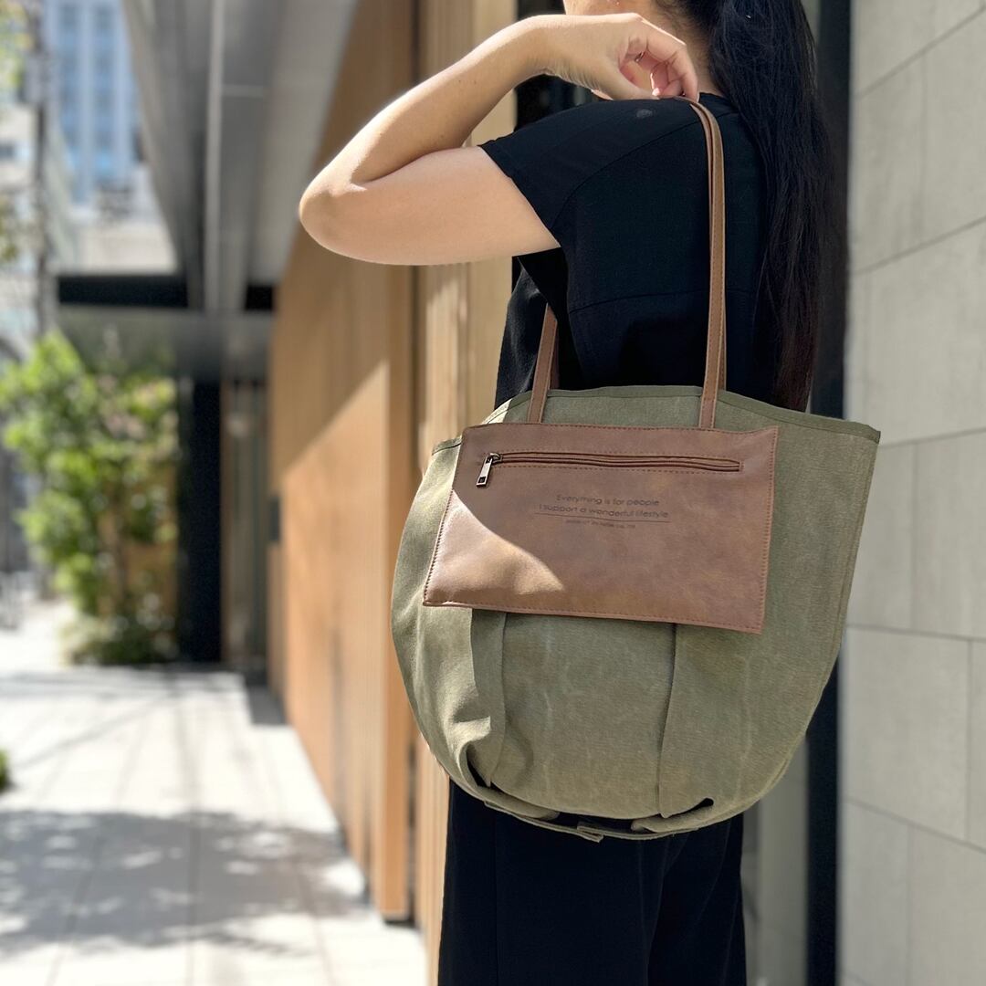 ニュアンスのある帆布とマットな合皮のコンビがお洒落。