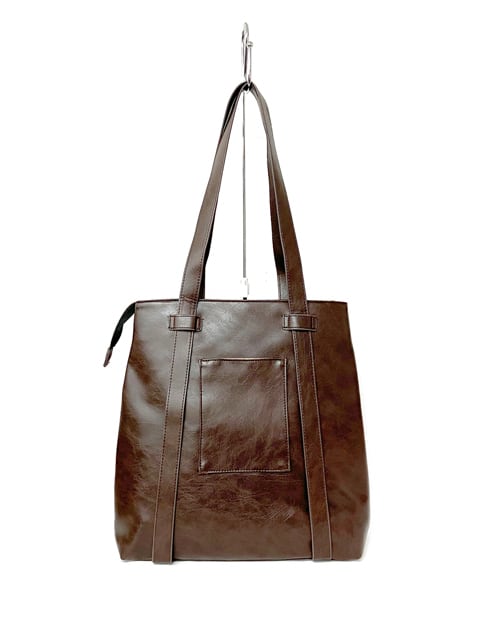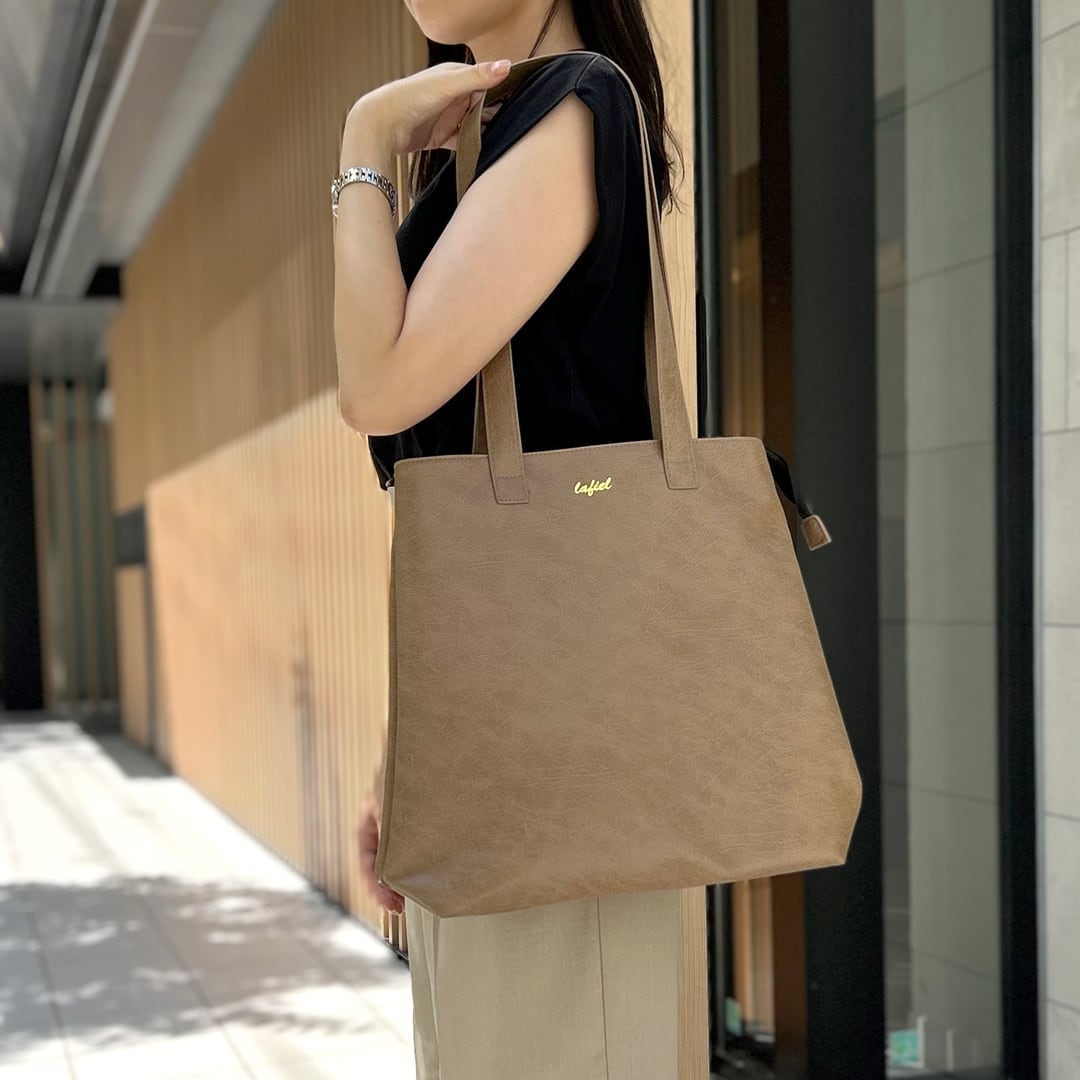 本革風の表情のある合皮で仕立てたシンプル3WAYトート。
