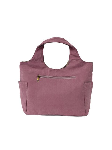 柔らかい手触りのピーチスキン風生地にサークル型の花刺繍を施した優しい雰囲気のバッグ。