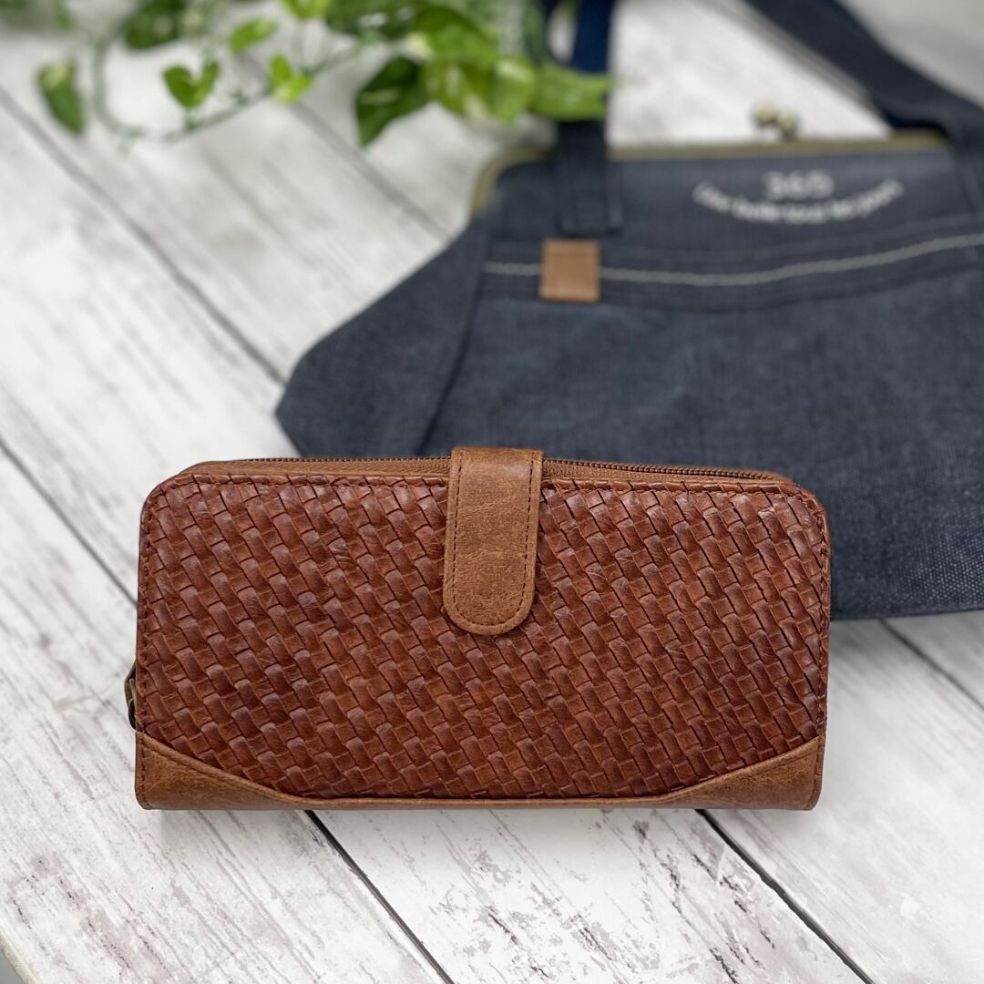 型押しメッシュ 合皮 長財布 全4カラー