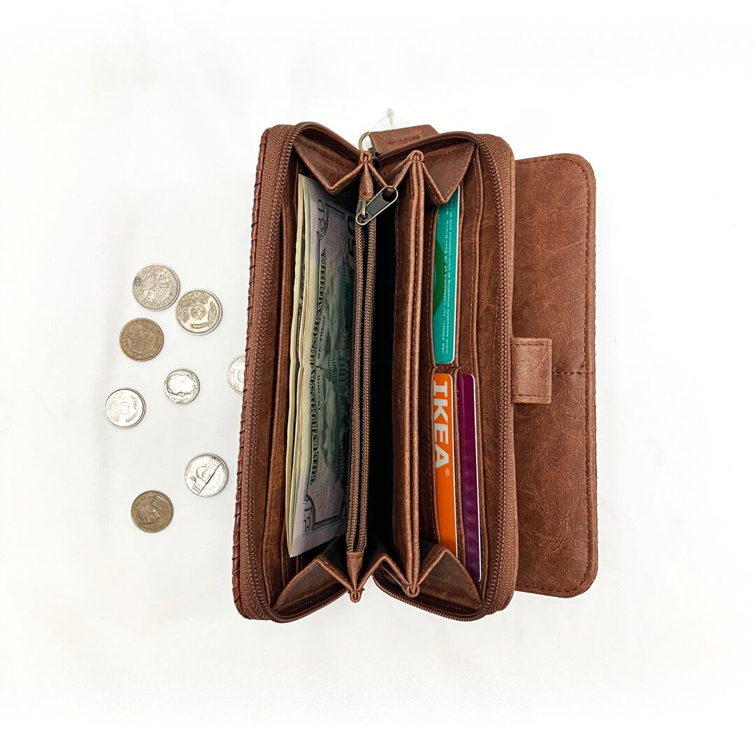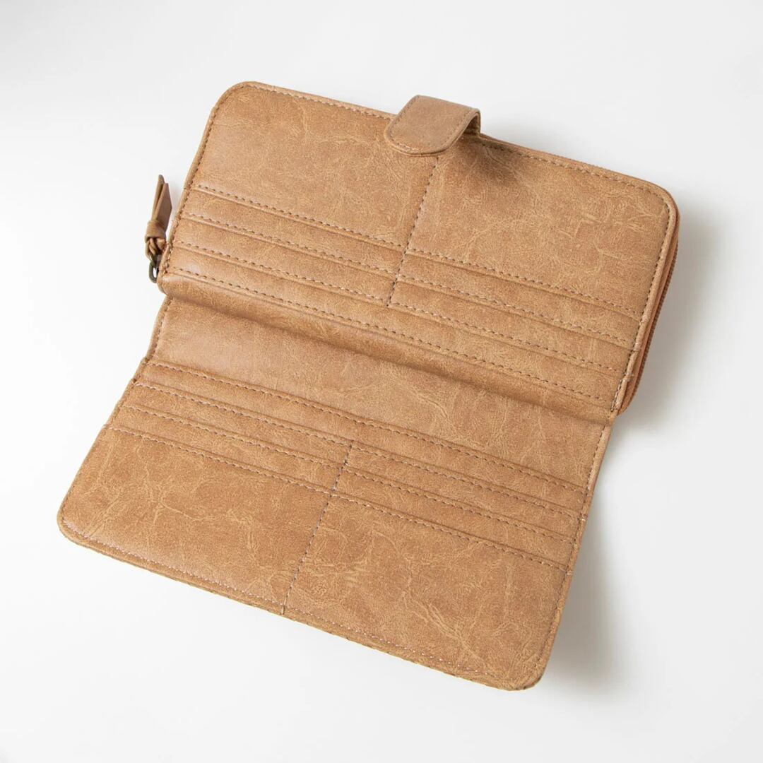 ◆大きく開いて中身が見やすいラウンドファスナー仕様で、お札やチケット・カード類がすっきり入ります。